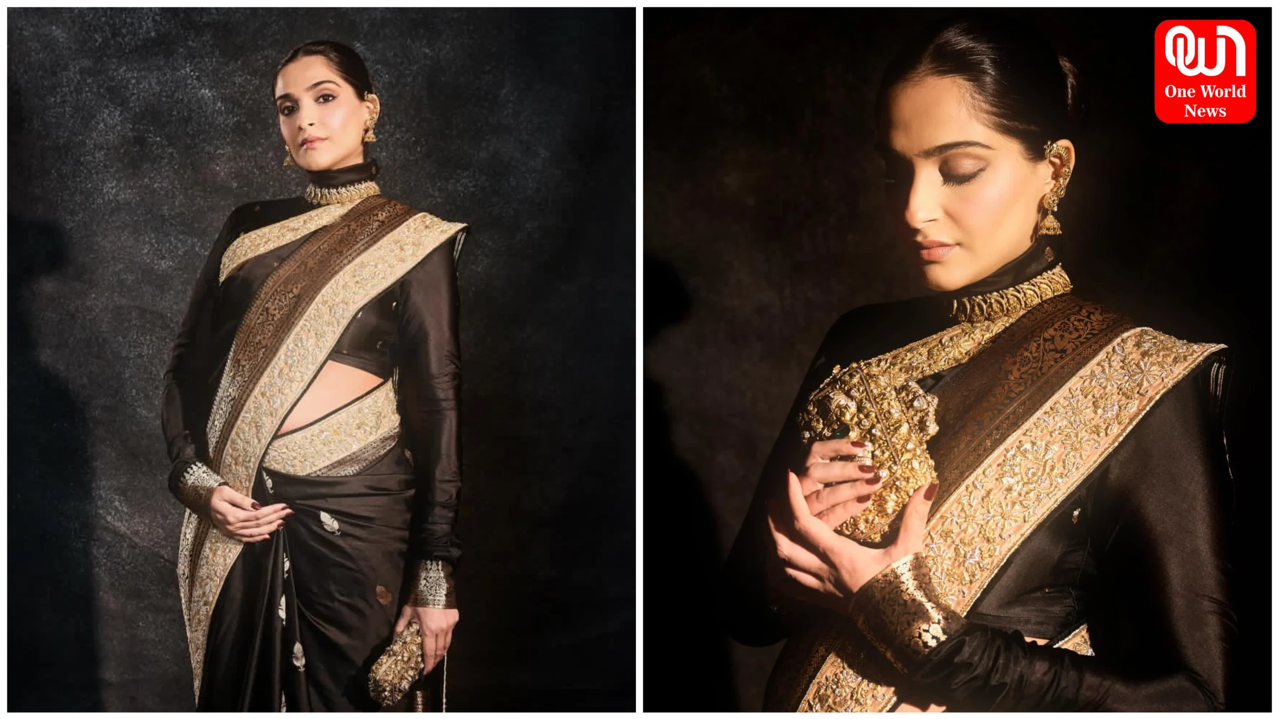 সোনম কাপুরের বোন এবং স্টাইলিস্ট রিয়া কাপুর অভিনেত্রীর সর্বশেষ ছবিগুলি শেয়ার করেছেন, যেখানে তাকে একটি ক্লাসি অবতারে দেখা যাচ্ছে। আবু জানি সন্দীপ খোসলা এবং স্বদেশ ইন্ডিয়ার ডিজাইন করা এই কালো ব্রোকেড শাড়িতে সোনমকে অসাধারণ দেখাচ্ছে।