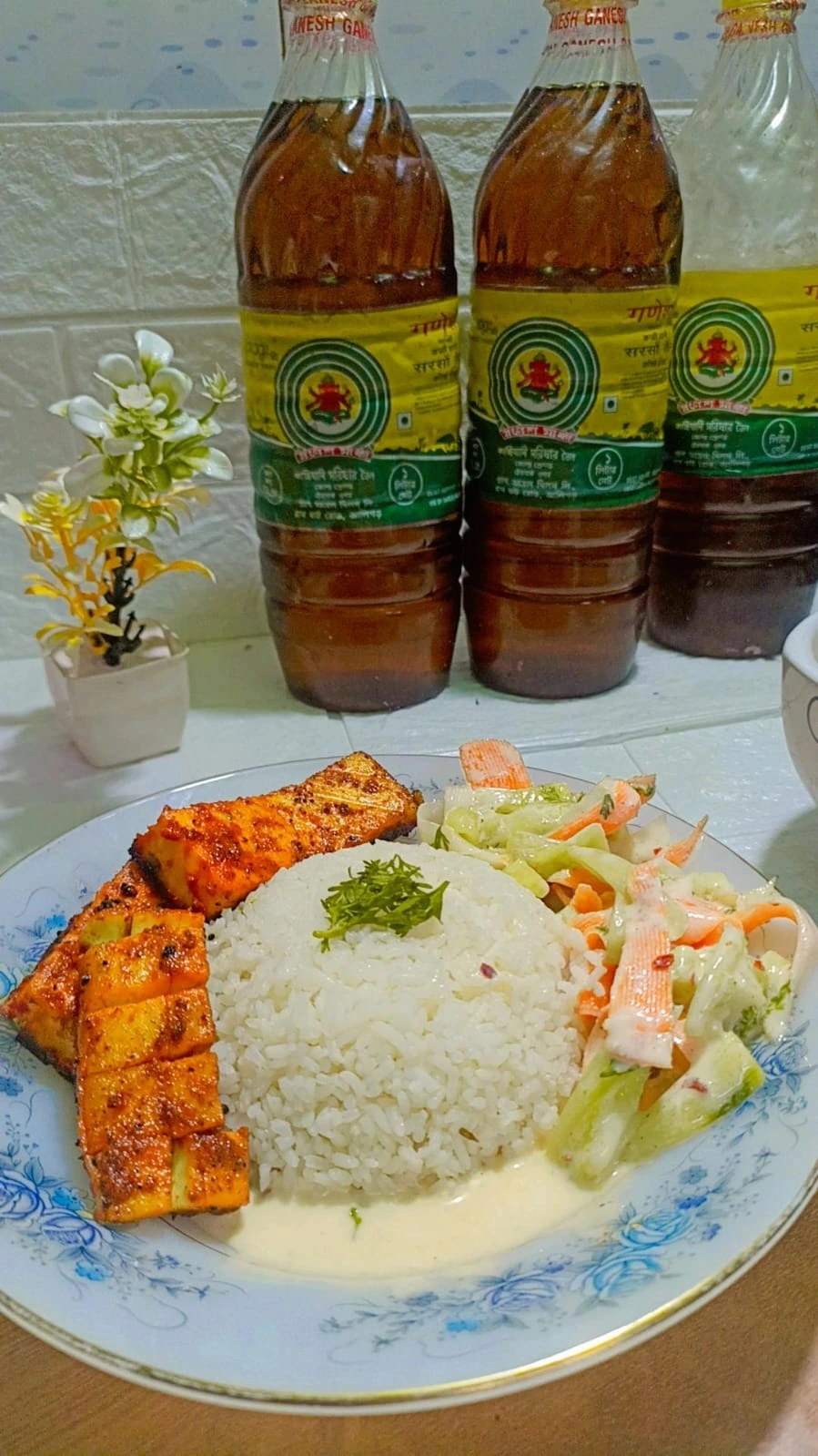 • সবশেষে জিরে রাইসের সাথে গরম গরম পরিবেশন করলেন গ্রিল পনির উইথ স্যালাড।